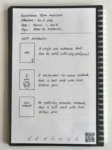Perceptible lines, if that’s your thing. And, don’t worry. If you want to use your Rocketbook for writing, our dots are patterned well enough to let you see the lines. Rocketbook founder Jake comments that, “The denser dots are actually college ruled lines so it's great for notes or math diagrams.” Our dot-grid-line pattern is superior to other patterns in that it offers perceptible lines.