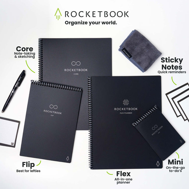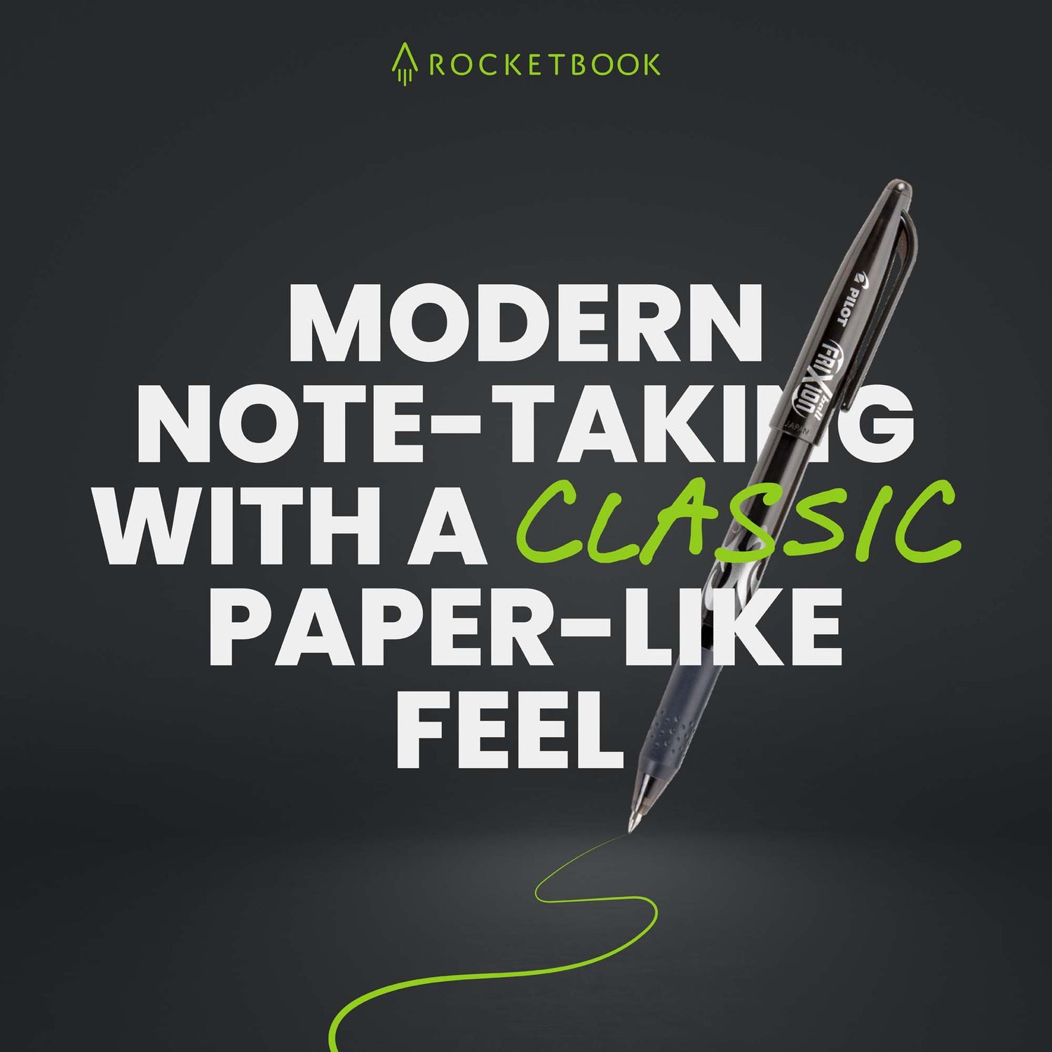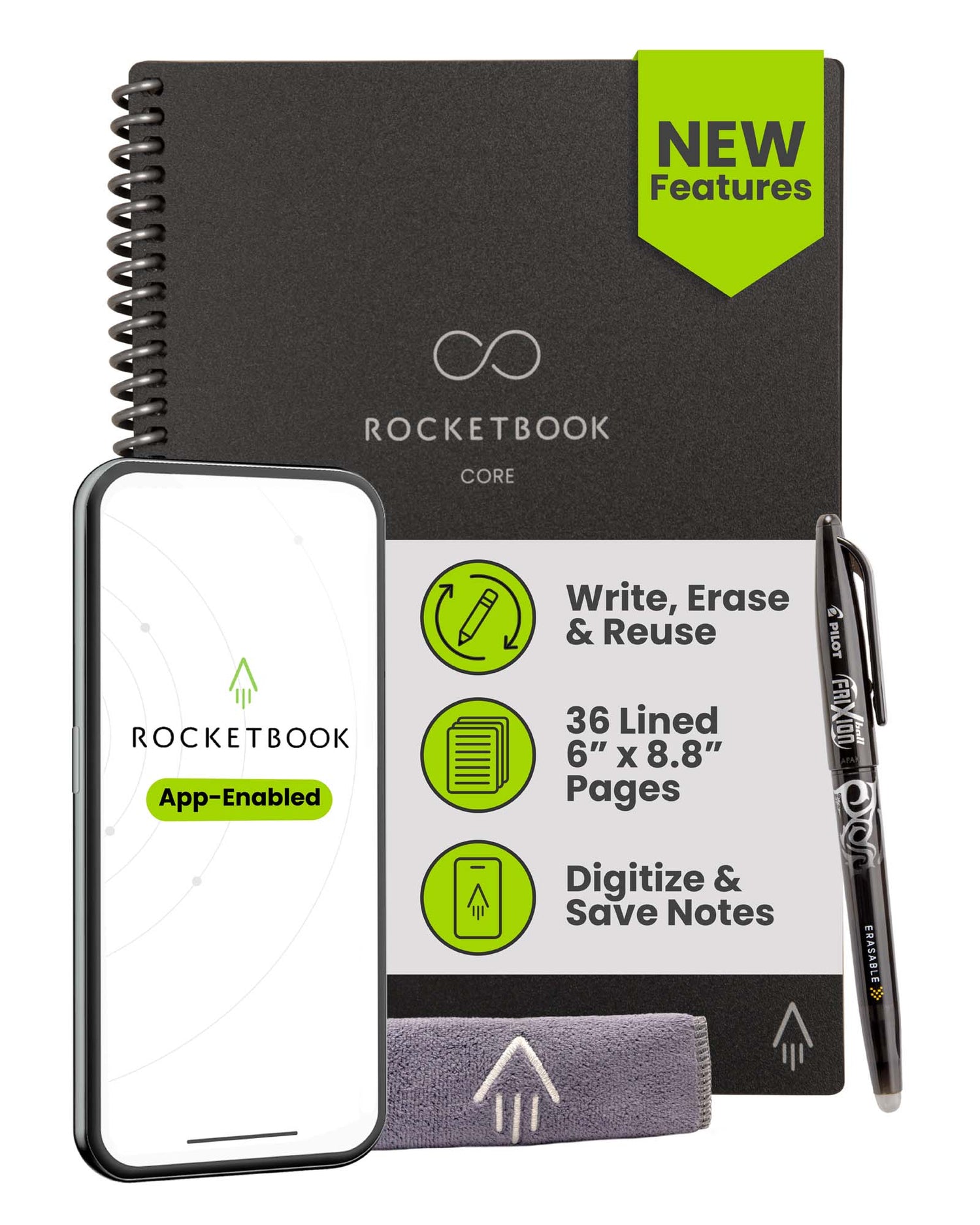 • New and Improved Core: Features premium reusable paper, with improved pen to paper feel, spiral binding and sleekly re-designed, scratch-resistant cover. Grid layout pages now include Smart Titles and Smart Tags to name and organize files efficiently. Create, Digitize, Erase, Re-Create: Capture ideas with the included Pilot Frixion Pen, digitize effortlessly using the Rocketbook app, store in your preferred cloud service. When done, simply wipe the pages clean with a damp cloth and start fresh.