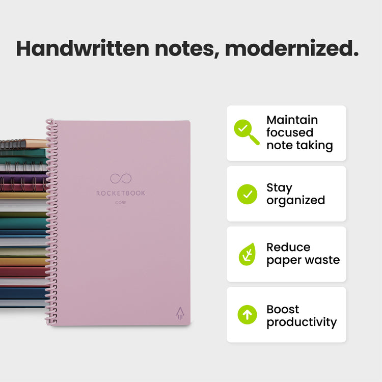 We designed the Core for those who want an endlessly reusable notebook to last for years, if not a lifetime. The Rocketbook Core has specially engineered pages that provide an extremely smooth writing experience that can be erased with a damp cloth.