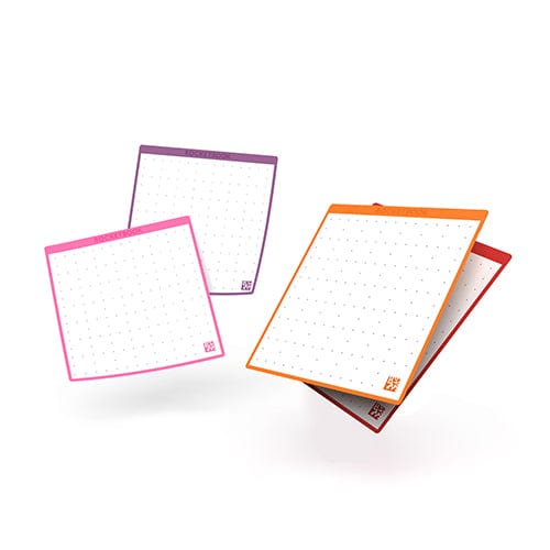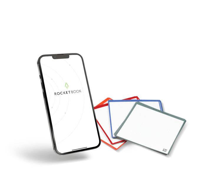 Reusable Sticky Notes are made from Rocketbook’s durable, erasable paper. Enjoy the classic feel of pen to paper, then wipe clear with water to reuse again & again–no more trash can basketball, just an organized work-space free of clutter.