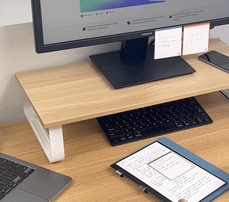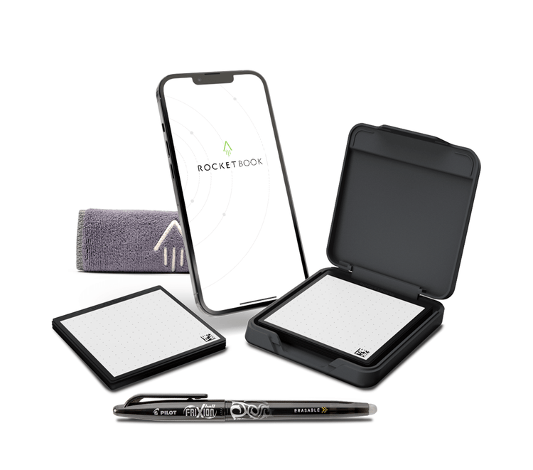 Reusable Sticky Notes are made from Rocketbook’s durable, erasable paper. Enjoy the classic feel of pen to paper, then wipe clear with water to reuse again & again–no more trash can basketball, just an organized work-space free of clutter.