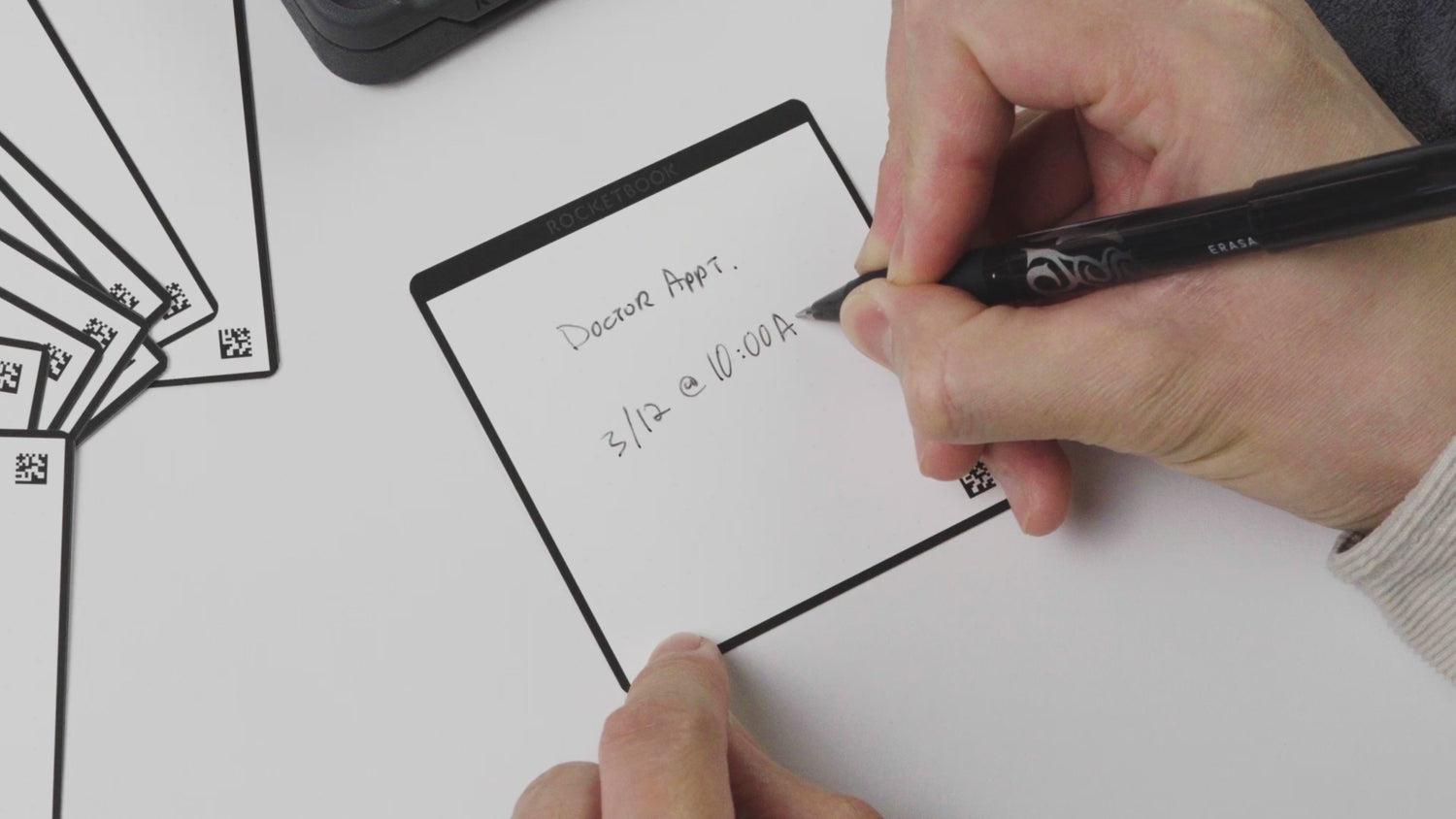 Reusable Sticky Notes are made from Rocketbook’s durable, erasable paper. Enjoy the classic feel of pen to paper, then wipe clear with water to reuse again & again–no more trash can basketball, just an organized work-space free of clutter.
