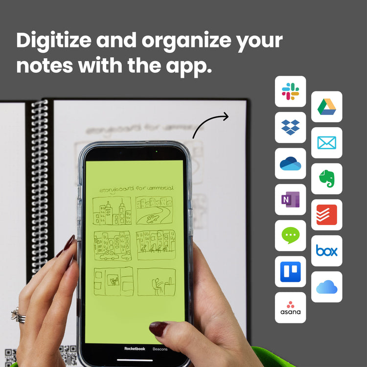 The Rocketbook Core notebook provides a classic pen and paper experience, yet is built for the digital age. Although it feels like a traditional notebook, the Core is endlessly reusable and connected to all of your favorite cloud services.