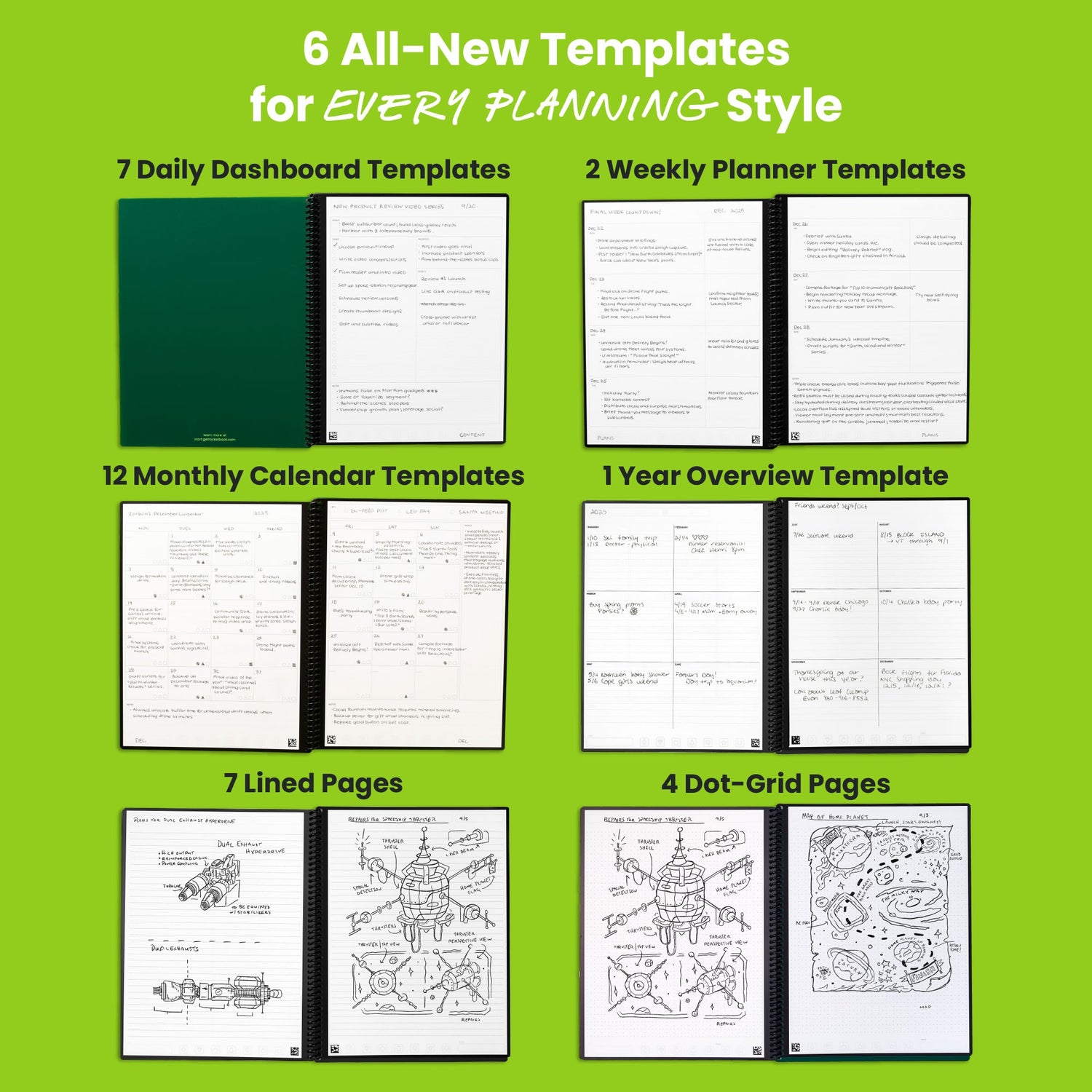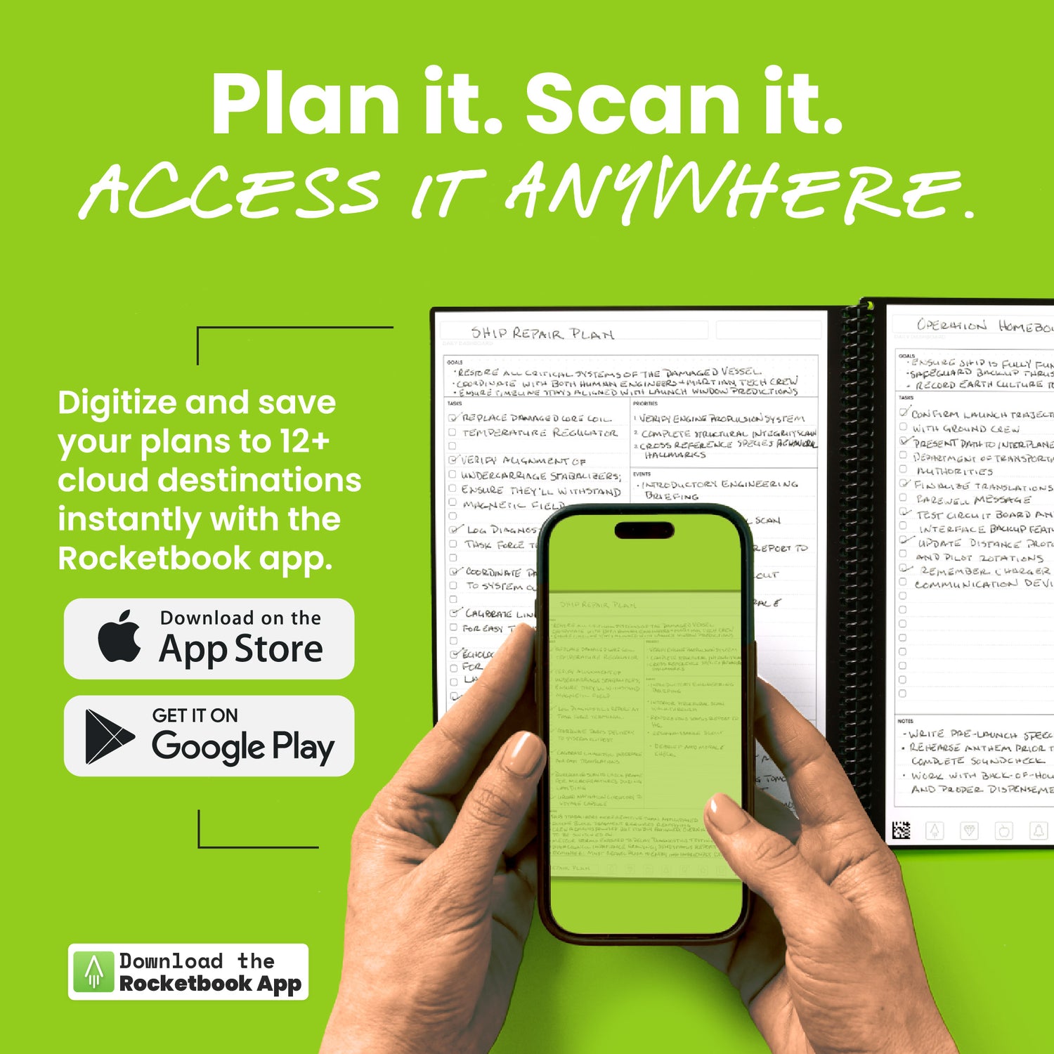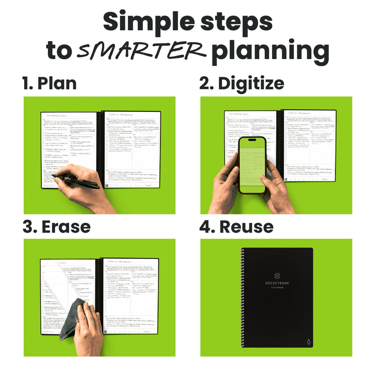 Easily map out your schedule with reusable pages for daily, weekly, monthly, and yearly planning. Then, when you’re done, simply digitize your plans with the Rocketbook app and wipe the pages clean to start fresh again and again.