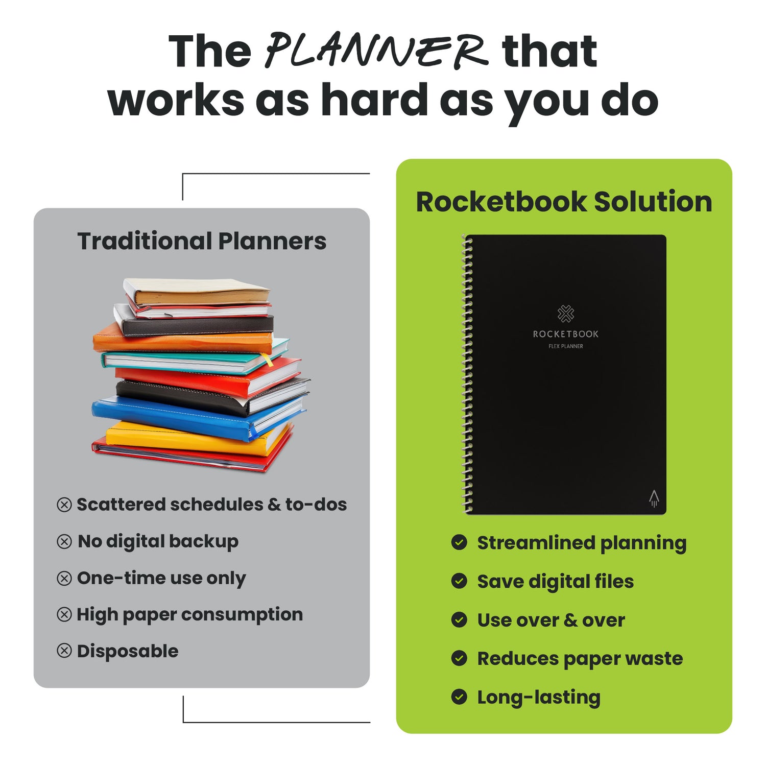 The all-new Rocketbook Flex planner fully adapts to your work style. It’s here to organize your world and empower your goal-setting.