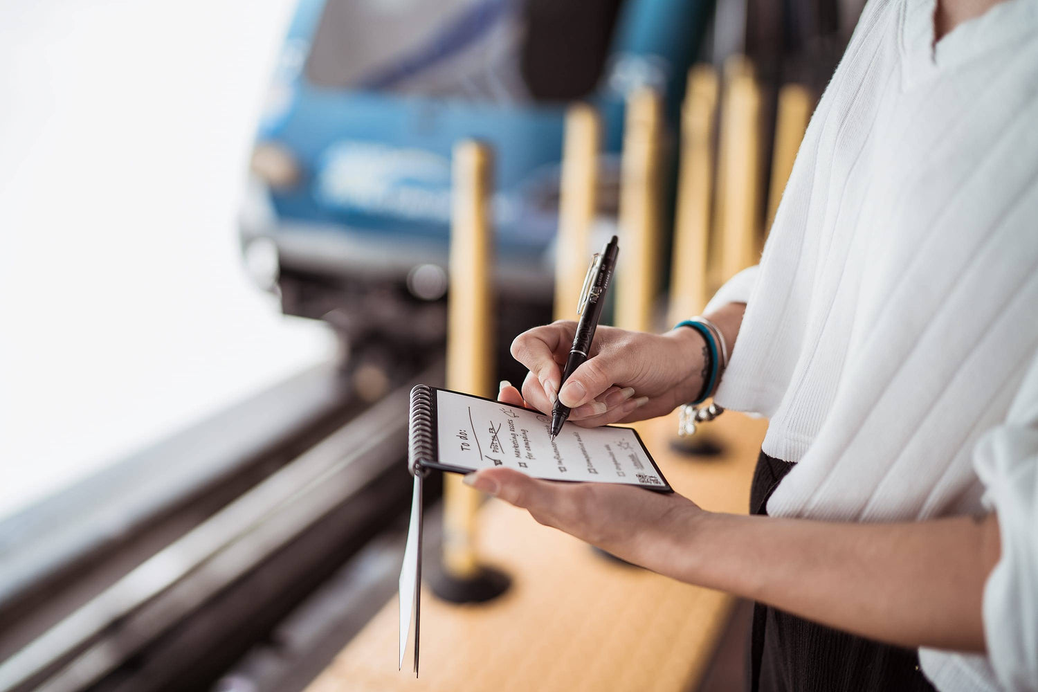 Ready to stay organized while on the go? The Rocketbook Mini is for you! This smart notepad is the perfect productivity companion and can even accompany you on your travels. Simply write down your ideas, designs, or notes, and blast them off into the cloud in a matter of seconds!